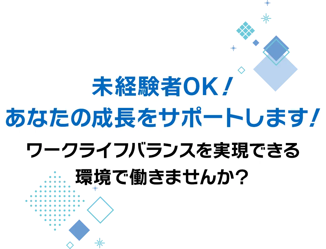 スキルと経験を積んだ後は、将来の幹部候補としてのキャリアアップも可能です。将来を見据え、未経験からしっかりと手に職をつけたい方はぜひご応募ください。
